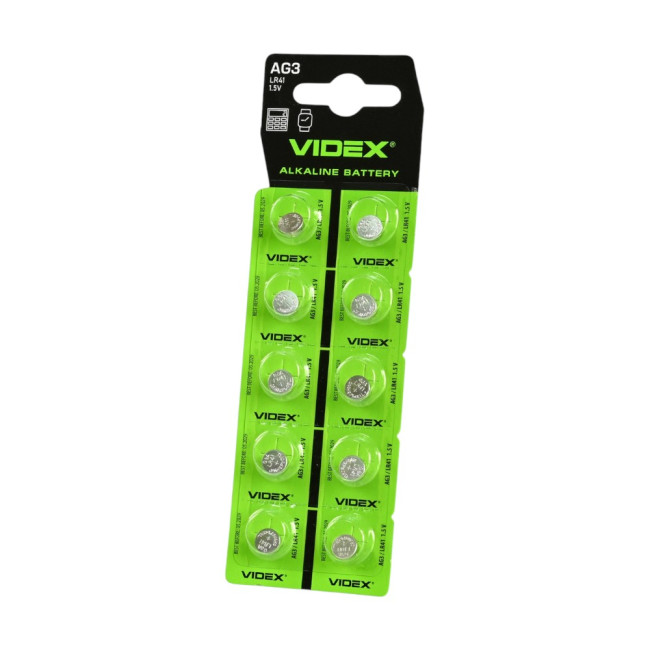 Батарейка Videx AG3 (LR41) Alkaline 1.5V D7.9×3.6мм, 10шт – для годинників і електроніки (Код товару 291727)