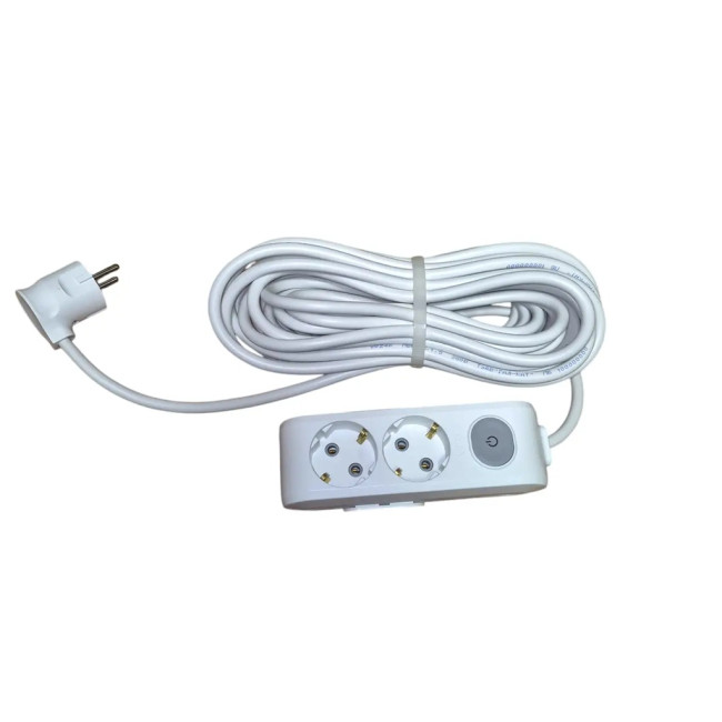 Опис Електричний подовжувач з вимикачем і заземленням 16А (3,5 кВт), 2 розетки, довжина 10 метрів, білий, IP20