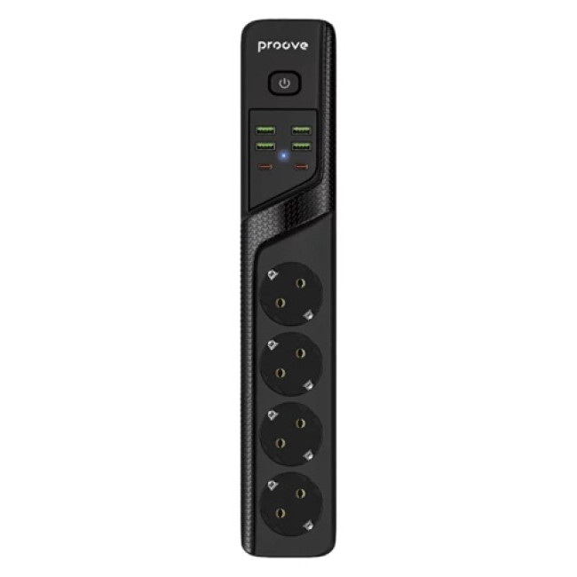 Мережевий фільтр Proove P-04 (4 розетки + 4 USB + 2 Type-C) 2 м, чорний, вогнестійкий пластик, швидка зарядка (Код товару PSP442420001)