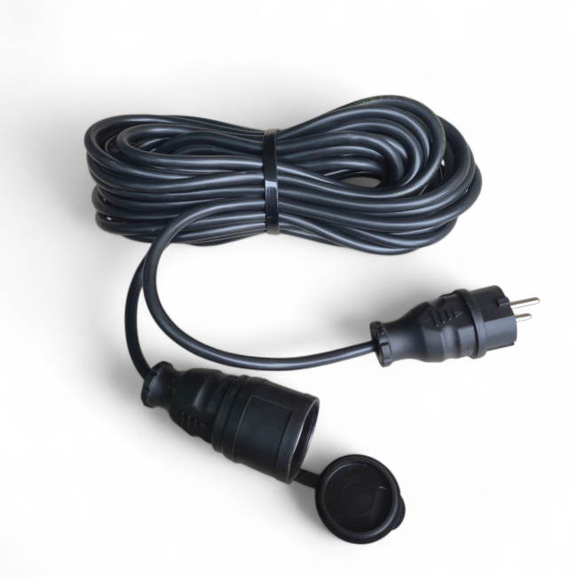 Подовжувач електричний 1 гніздо з заземленням 16А (3,5 кВт) довжина 7 м – силовий каучуковий ПВС 3x1.5 IP44, зовнішній/внутрішній — потужний і довговічний подовжувач для надійного підключення електроприладів у побуті, майстерні або на відкритому повітрі. Завдяки 7 метрам довжини забезпечує максимальну свободу дій, а ступінь захисту IP44 дозволяє використовувати його навіть у складних умовах – вологість, пил, будівельні роботи.
