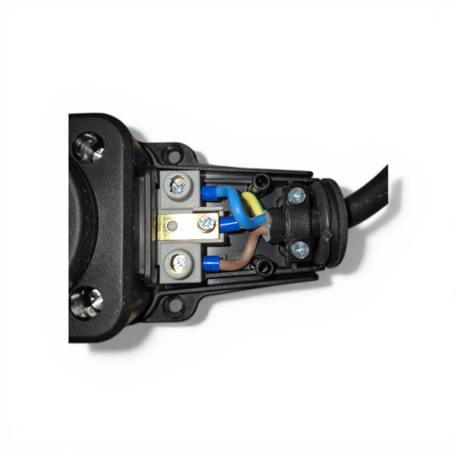 Мідний кабель 3×2.5 мм² забезпечує надійне живлення при струмі до 16А (до 3.5 кВт). Товсті жили мінімізують нагрівання та падіння напруги навіть при тривалому навантаженні. Внутрішні з’єднання виконані гвинтовим способом з якісною фіксацією кабелю, що підвищує довговічність та безпеку експлуатації.