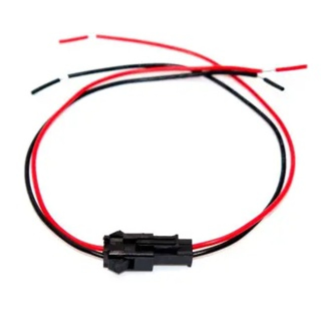 Конектор складається з двох частин: штекера та гнізда, які з’єднуються між собою за допомогою фіксуючого замка. Це забезпечує стабільний контакт і запобігає випадковому роз'єднанню. До кожного з елементів вже під'єднано дріт довжиною 14 см, що суттєво полегшує монтаж. Роз'єм виготовлено з якісного пластику, стійкого до зношування та нагріву.