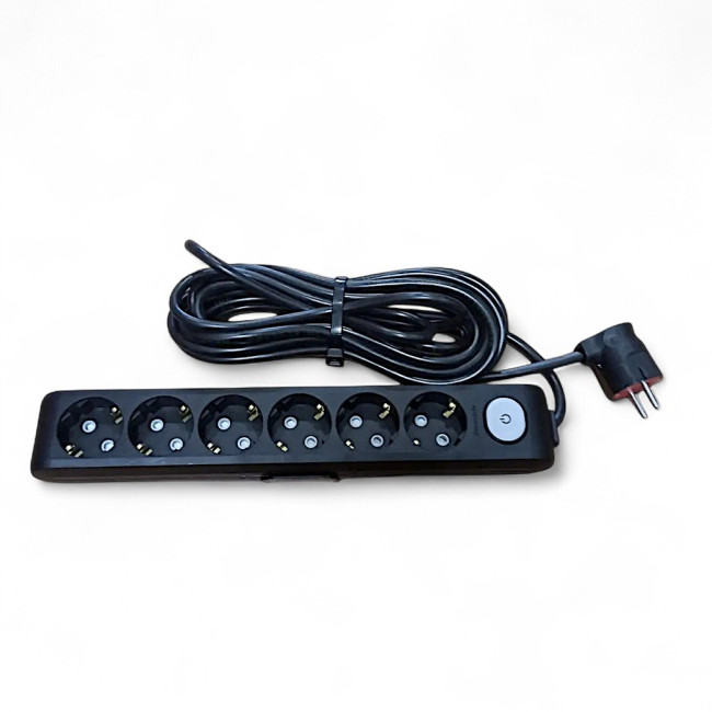 Кабель длиной 10 метров позволяет свободно размещать оборудование в разных частях помещения. Шесть розеток обеспечивают подключение всей необходимой техники без лишних переходников.