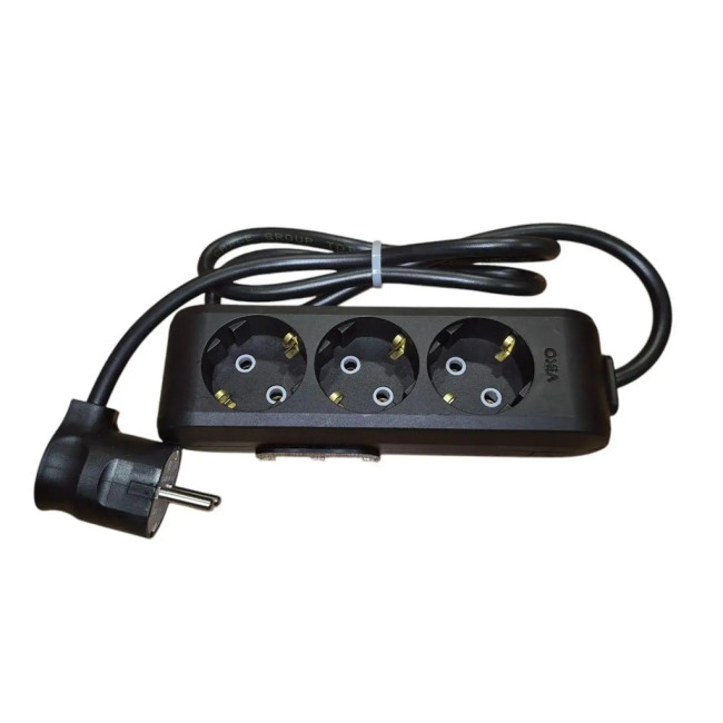 Описание Удлинитель с тремя розетками, заземлением и защитой 16А (3,5 кВт), 2 метра, чёрный, IP20